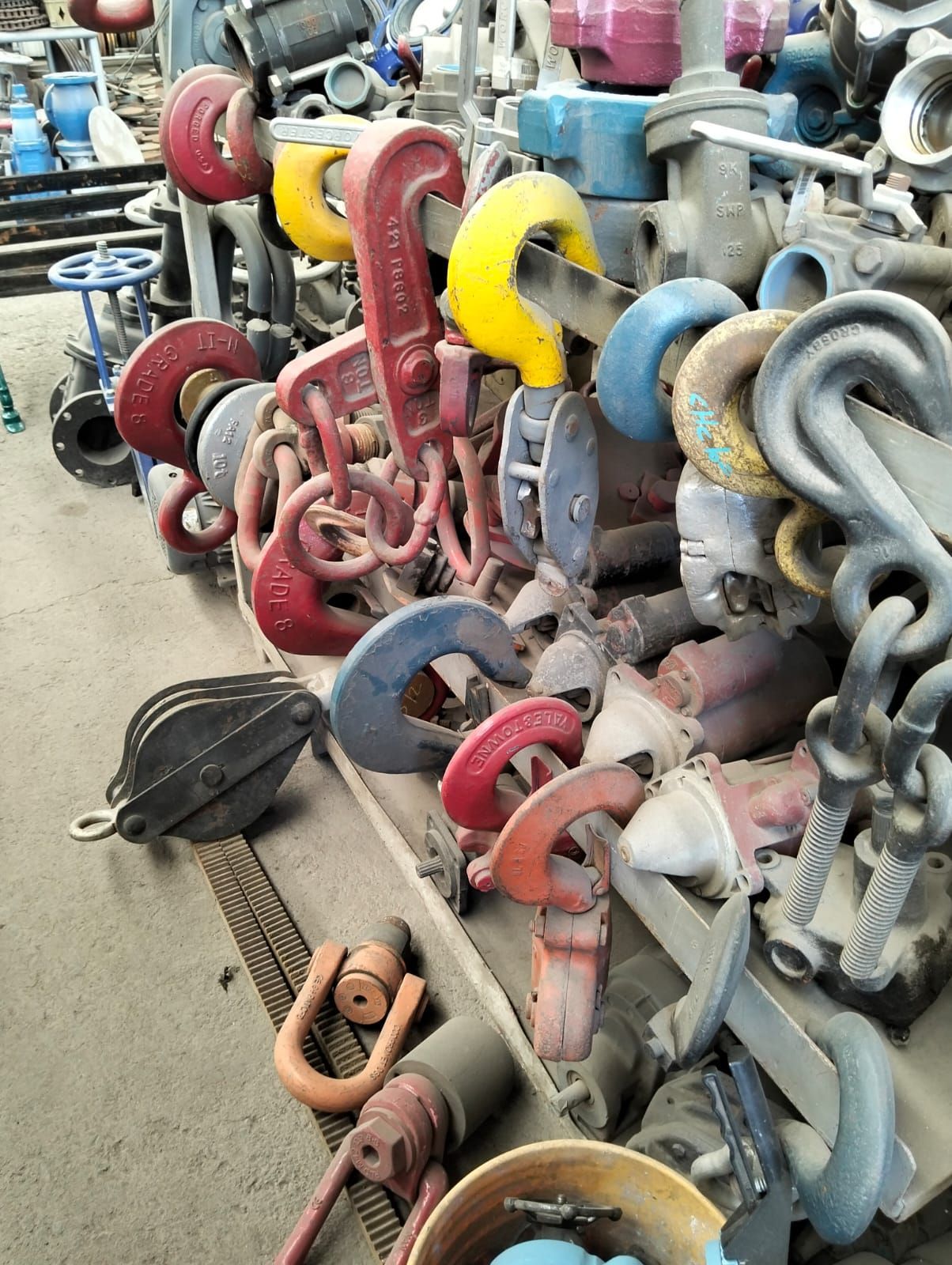 - Piezas de recuperación tales como: cadenas, poleas, motorreductores, catarinas, ganchos, polipastos, válvulas, chumaceras, engranes, tubería negra e inoxidable, rejilla Irving, codos, bridas negra e inoxidable.